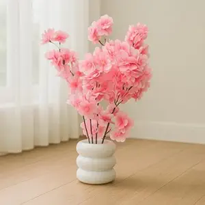 Artificial Pink Flower Stems in Modern Ceramic-Style Pot Faux Blossom Arrangement for Home Decor, Living Room, Bedroom, Office Desk, Table Centerpiece & Interior Decoration
